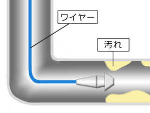 専用逆噴射ノズルを装着し高い水圧でゆっくり洗浄していきます